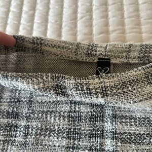 This chic black and white plaid skirt is perfect for any occasion. Its classic design offers a timeless look that pairs well with any top. Elevate your wardrobe with this versatile piece. Stretchy from the waist and in good condition.