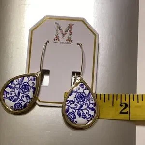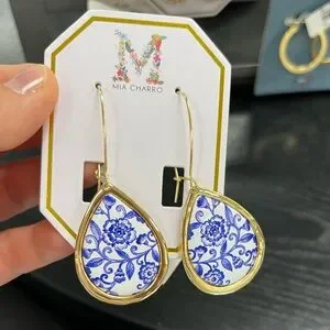 NWT ⚜️💙⚜️ Mia Charro Floral Ceramic Tile Teardrop Earrings