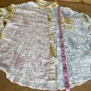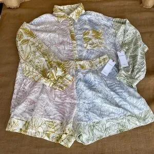 NEW Aura Linen Blend Botanical Print Long Sleeve Shirt and Matching Shorts