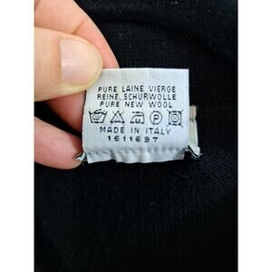 Crafted in Italy, the sweater is made from breathable wool, ensuring comfort across all seasons. With long sleeves and a design that caters to various occasions, it's an essential addition to any discerning gentleman's collection. Whether you're attending a business meeting or enjoying an evening out, this Linea Uomo sweater is sure to enhance your look with its understated Italian flair. This is in excellent condition and measures 25" from armpit to armpit and 29" from shoulder to hem.