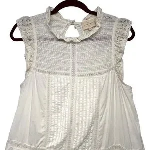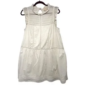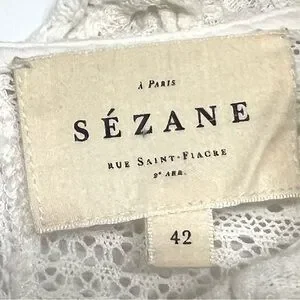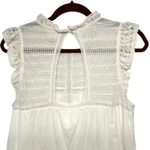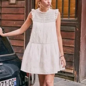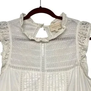 Sezane Sophie White Cotton Lace Ruffle Bohemian Mini Shift Dress Women’s US 10 EU 42