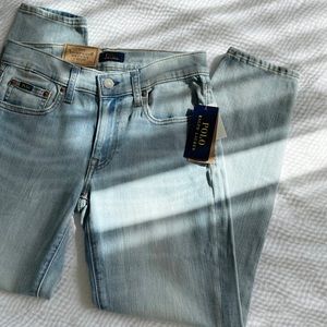 ▫️Polo by Ralph Lauren The Tompkins Skinny crop distressed jeans in a light wash. Thinner denim, Comfy, soft & very stretchy!