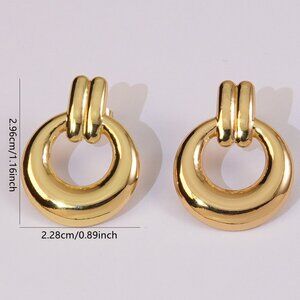Gold Plated Circle Stud Earrings, Stainless Steel, Urban Elegant