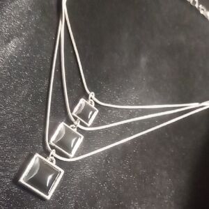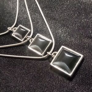 3 Layered Black Pendant & Silver Necklace Snake Chain.