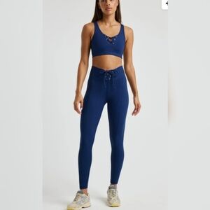 Year of Ours Ribbed Lace Up Football Leggings in Navy size Medium