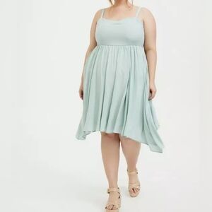 Torrid Mint Blue Challis Sharkbite Skater Dress
