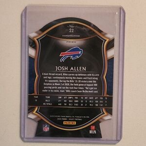 Josh Allen football card with vibrant design. Features blue and gold accents.