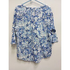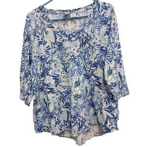 Joie Womens BOHO Blouse Top Size 1X Blue Floral 3/4 Sleeve Cottagecore