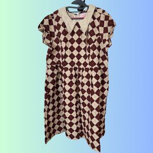 Discontinued Tuesday of California Dagger Dress in saltine argyle motif. Beautiful linen-cotton blend fabric. I have a similar dress from the brand and it's worn very nicely.