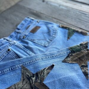 Women’s Denim Patchwork Jeans Camo stars Reworked Jeans Wrangler