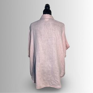 Vikolino 100% European Washed Linen Mauve Button Down Short Sleeve Top, Size XL