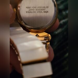 Like New, Albalone, Diamond Face Quartz Watch. Albalone & Mother Of Pearl expandable Band..6" and up. gold tone bezel color, analog display.
