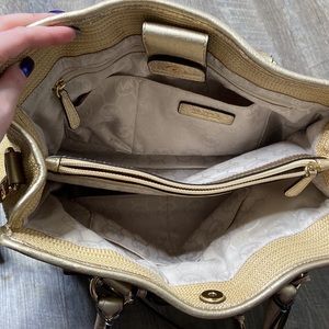 Michael Kors Hamilton Handbag in Gold/Neutral.