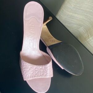 Chanel Pink Women's Slides Sandals mules slip ons low heels leather 39 8.5 pumps