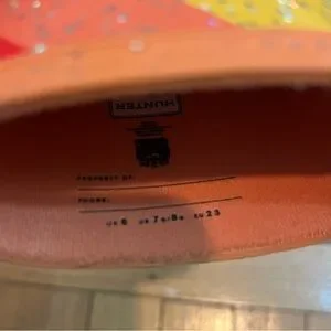 Size 7 toddler rain boots by Hunter. Super sturdy and durable design. EUC, no visible wear except on the soles.