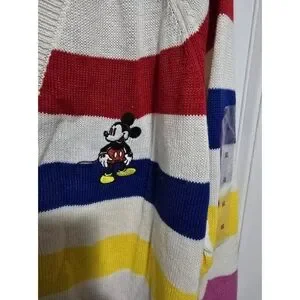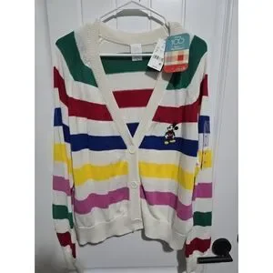 Disney 100 Years Womens MICKEY striped Sweater Cardigan XL New NWT Button Up