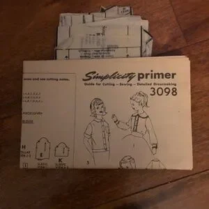 Simplicity 3098. Vintage girls button down shirt sewing patterns. 10 of 10 Pieces.