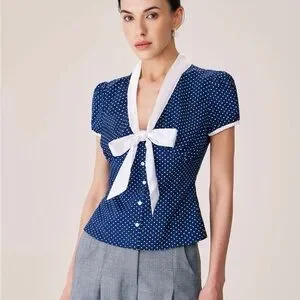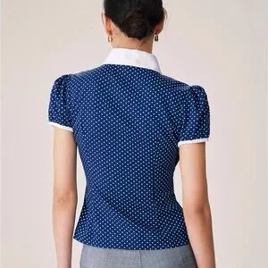 NWT RIHOAS Blue Polka Dot Puffed Sleeve Blouse