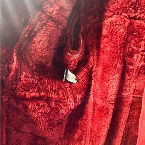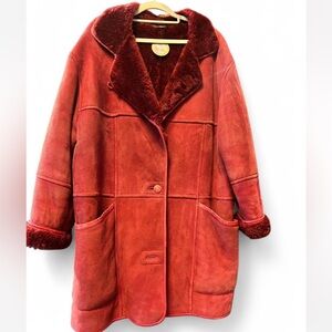 Sherpa Shearling lined Genuine Suede Red leather coat. You will not find a similar piece. These coats are usually made from the animal fur and skin still attached and then dyed. So warm.