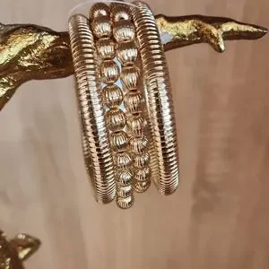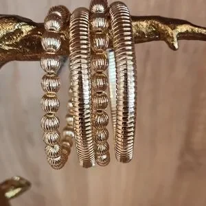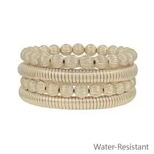 Women's Textured Beaded Gold Ribbed Stretch Water-Resistant Bracelets Set of 4
