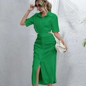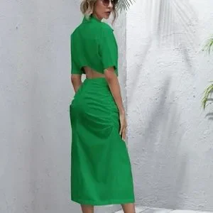 Button front ruched detail cut out shirt dress