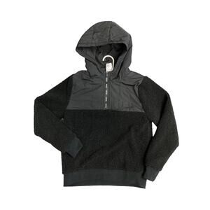 HUGO BOSS Boys Black Faux Fur Shearling Hooded Logo Sweatshirt Jacket Size 10