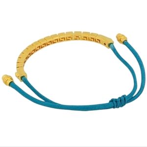 Tags: jewelry, modern, chic, goldtone, statement, unique, versatile, unisex, Greek, greca, cord, bolo, bracelet, brand, designer, luxe, luxury