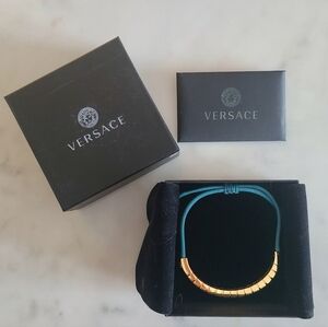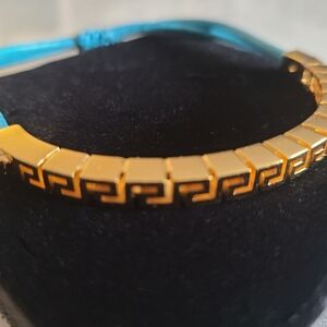 Versace Greca Slide Bracelet, Adjustable, Blue | Goldtone, NIB