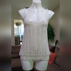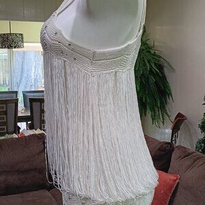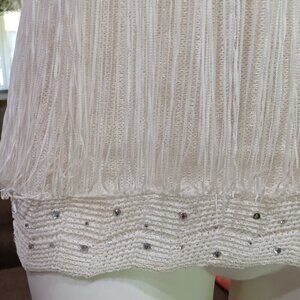 MKM Designs Ladies White Crochet Fringed Tank Top w/ Rhinestone Details Sz L