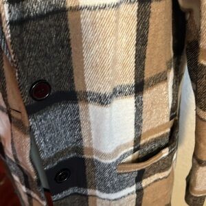This is a super cute soft flannel with extra button, buttons down and front pockets. Can be dressed up or dressed down. Shacket