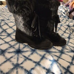 COACH Jennie Fur Trim Monogram Winter Snow Boots - Black size 5