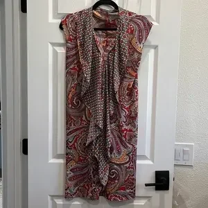 NWOT beautiful Paisley sleeveless dress with attached ruffle on front. You also can tie the ruffle around your neck to make In a different look super functional