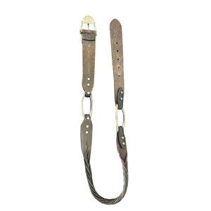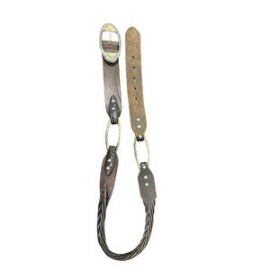 Brighton Vintage Brown Leather Braided Belt With Worn Buckle Size 38