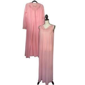 Shadowline Vintage Nightgown & Robe Set Women's Petite Small Embroidered Lace