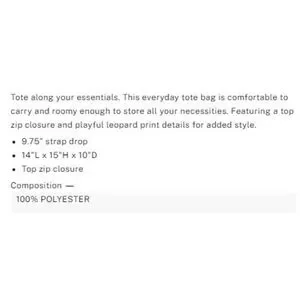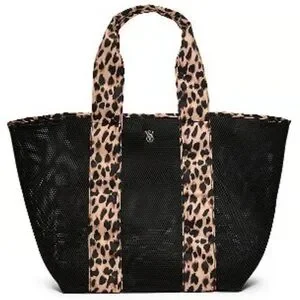 NWT in Bag Sold out Victoria’s Secret Leopard/Black Mesh Tote Top Zip Closure Bag. Tote along your essentials. This everyday tote bag is comfortable to carry and roomy enough to store all your necessities. Featuring a top zip closure and playful leopard print details for added style.