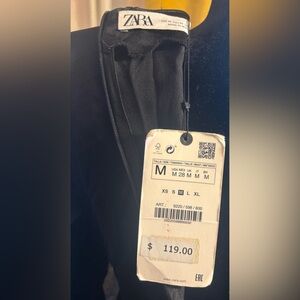 Zara Long satin effect dress with round neck and long sleeves with shoulder pads. Leaf shaped beaded appliqués and openings with pleats at front. Back hidden in-seam zip closure.