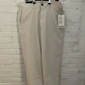 These tan chinos are crafted from a smooth fabric, offering a comfortable and polished look. With a tapered fit, they are perfect for both casual and business casual occasions. The full-length design ensures a timeless appearance.