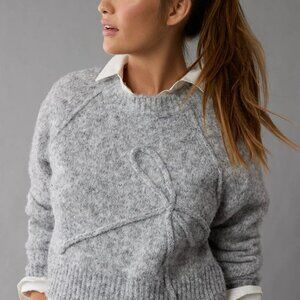 American Eagle AE Cropped Crew Neck Bow Sweater