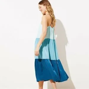 LOFT Beach | Dresses | Loft Aqua Colorblock Cross Back Midi Dress
