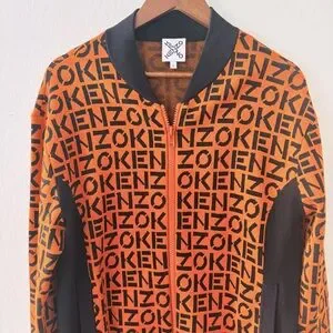 Stylish Kenzo men's sweater featuring a bold orange and black design. Perfect for adding a pop of color to your wardrobe.