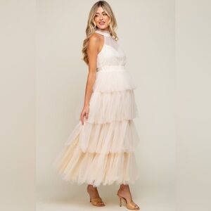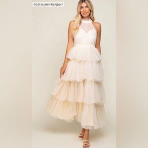 Pinkblush halter tulle ruffle tiered maxi dress nwot