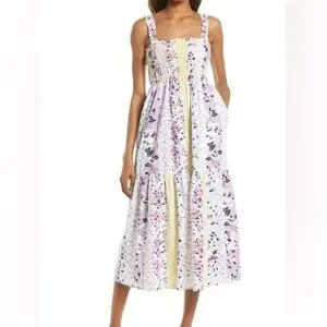 Dreamy pastel blooms pattern a sleeveless, square-neck sundress with a smocked bodice that's perfect for picnics, date night and everything in between. Style Name: French Connection Ekeze River Rhodes Floral Sundress.