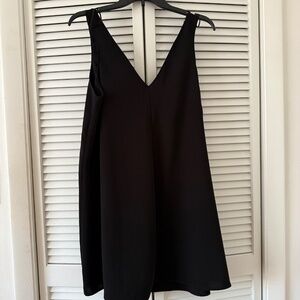 Zara classic black V-neck shift dress. Sleeveless design with a relaxed, flowy silhouette. Features a flattering V-neckline in both front and back. Lightweight fabric with a smooth drape for an elegant look. Versatile piece perfect for both casual and dressy occasions.