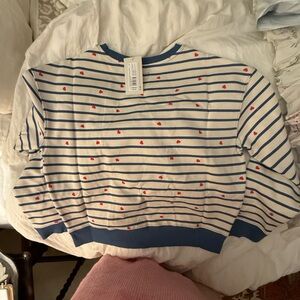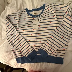 Pact Blue and White Relaxed Long Sleeve 💯 cotton fleece Top