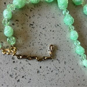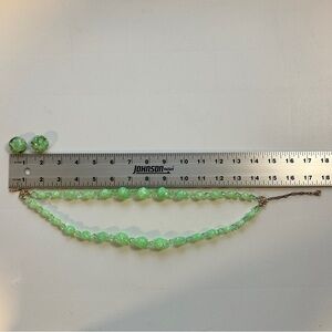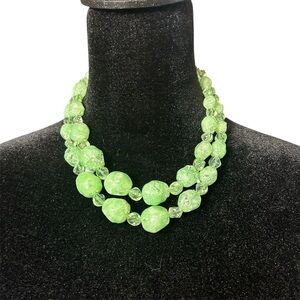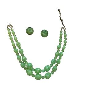 Vintage Coro Green Beaded Two Strand Necklace With Matching Clip on Earrings