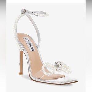 NWT Steve Madden Unleashed-P Pearl Bow Wrap Around Heel Sandals Size 10.