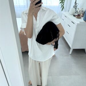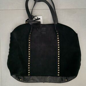 Elegant black Calf leather tote bag with stylish studded accents. Perfect for any occasion. Great for traveling as it lays completely flat and it’s lightweight.