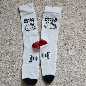 Enjoy comfort and style with these Hello Kitty boot socks. Featuring a cute design in white and black, these socks are perfect for any Hello Kitty fan. These socks should fit US women shoe sizes 5-7.