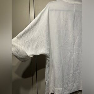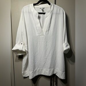 Calvin Klein white top with V-neck and 3/4 sleeves with button.