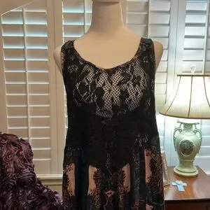 People Count Me in Trapeze Tank Tunic Top M Lace Yoke Floral Black